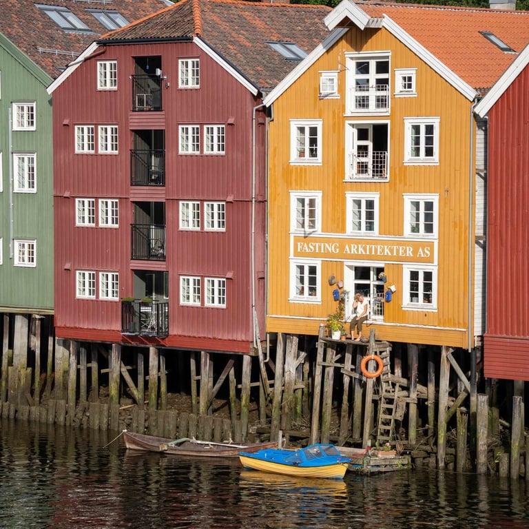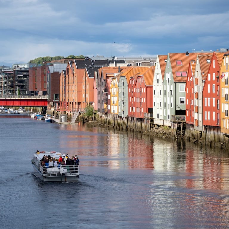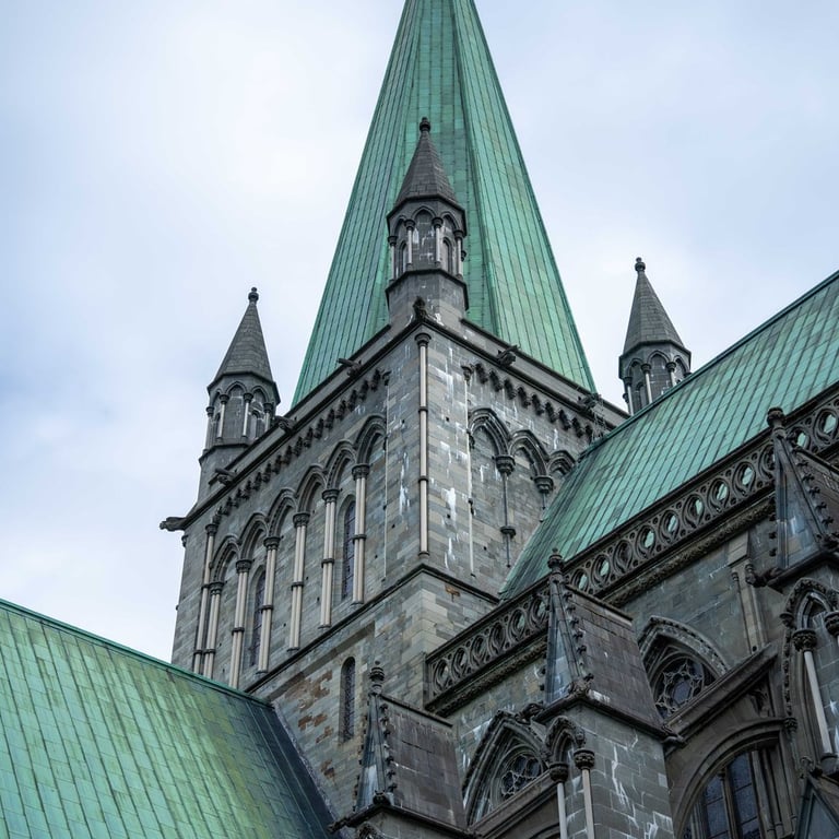 We take a car ferry from Kanestraum to Halsa to cross the fjord, saving us more than an hour's drive. Today we have lunch in the car and arrive in Trondheim around 2 pm, where we return our car from Avis at a petrol station. We can simply throw the key into a key box and the rental car is returned. Then we have to carry our luggage again by ourselves to our P-Hotel Brattøra near the train station. After checking in, we immediately head out to explore Trondheim a bit more. We enjoy the view of the many colourful houses reflected in the water near the harbour. After a visit to the outdoor shop "Skandinavisk Høyfjellsutstyr" where Annina buys a warm yellow jacket, we go to a few more shops. Then we visit the famous stone church "Nidarosdomen", which was built in the 11th century and has just been renovated. The church is very impressive, as its sheer size is breathtaking. In addition, the entire church is built of stone, which fits perfectly in this far north. We have really nice weather once again and enjoy the sun's rays while strolling through Trondheim. This time we have dinner at "Lan Na", a Thai restaurant, which serves exceptionally tasty and beautifully prepared food. We have spring rolls as a starter and for the main course Annina has the classic Tom Kha soup with rice and Nicolas takes the Pad Med Ma Muang, a wok dish with cashew nuts. Sated and satisfied, we walk to our hotel room and are glad when we get there, because in the meantime it has started to rain in Trondheim. We watch a few episodes of Stranger Things before going to sleep.