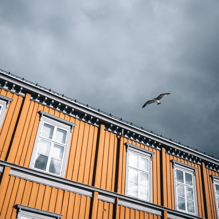 After packing and cleaning the Airbnb, the first thing we do is drive over the Atlantic Ocean Road again. This time the weather is different - it is foggy and cloudy, but sometimes the sun shines through the cloud cover. We drive through quite well until we reach Trondheim.