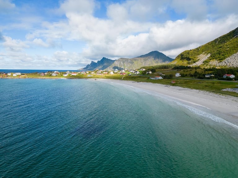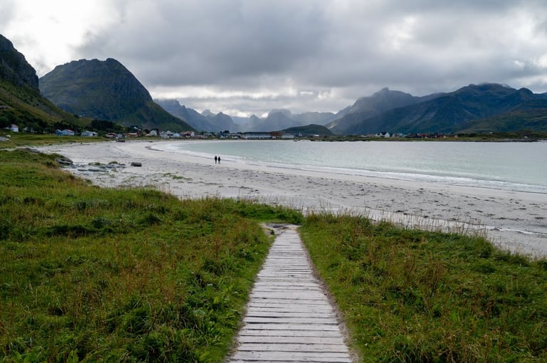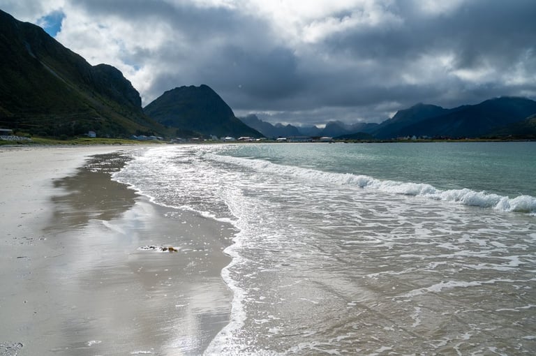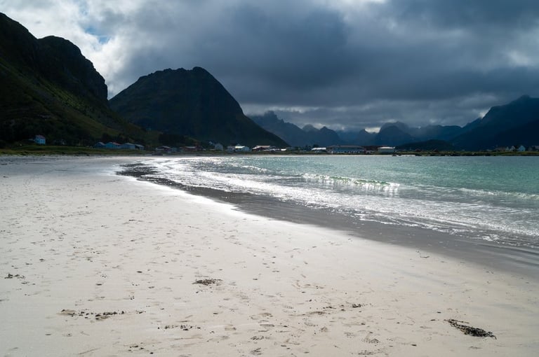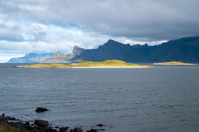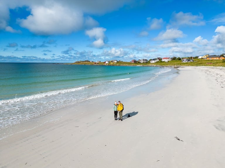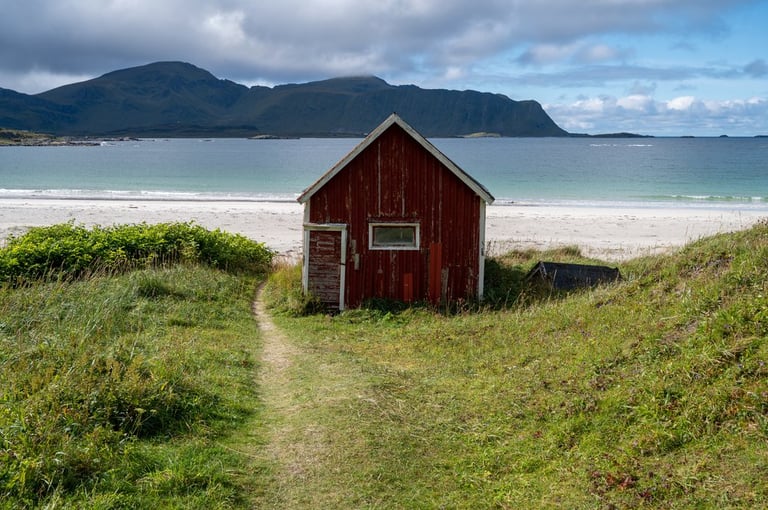 Now finally the sun comes out. That makes us want to go to the beaches! We drive to the Skagsandenbeach, the Rambergstranda, where we have a picnic and to the Sandbotnen beach. At each beach there are only a few other people. Even though the sun shines out from time to time between the clouds, the low temperatures don't really invite us to swim.