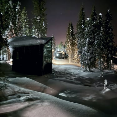 Am Nachmittag sind wir wieder in unserem Hüttchen und machen noch einige Fotos von der Unterkunft. Gegen den Abend fahren wir ins Nachbarörtchen Ruka und suchen nach einem Stativ für Annina, da ihres leider zu Hause geblieben ist. Als wir nicht fündig werden, fahren wir noch nach Kuusamo und tatsächlich gibt es im letztmöglichen von uns abgeklapperten Einkaufsladen noch genau ein Stativ! Glücklich, dass nun die Nordlichter auch fotografiert werden können, falls sie denn noch zu sehen sein sollten, fahren wir wieder in die warme Unterkunft - natürlich ist es inzwischen längst dunkel geworden. Am Abend machen wir es uns wieder so richtig gemütlich und essen im Dunkeln, damit wir sicher keine Nordlichter verpassen. Obwohl es nicht bewölkt war, waren die Nordlichter leider so schwach, dass sogar die Kamera diese kaum festhalten konnte. Hoffentlich haben wir die nächsten Tage mehr Glück.