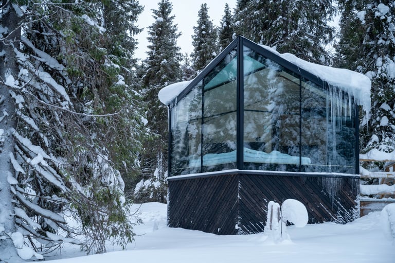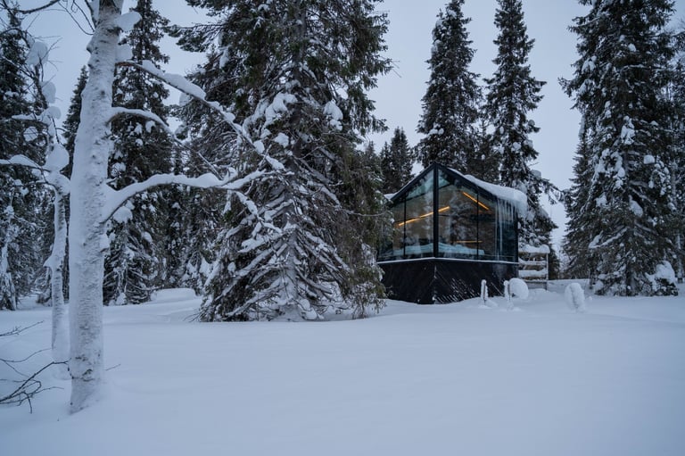 In diesem Magical Pond Hüttchen lässt es sich doch nur wunderbar schlafen. Aufwachen mit solch einer Aussicht auf verschneite Bäume ist nur genial. Heute ist es ziemlich bedeckt und hat sicher -10°C aber in der Unterkunft ist es umso kuscheliger.